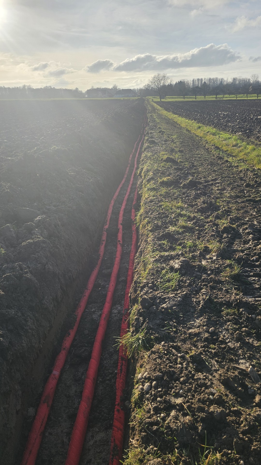 – mise en place des réseaux (en pleine terre à Hatten et dans des gaines à Rountzenheim, le long d’une route départementale, afin de protéger le réseau d’éventuels travaux futurs) ;