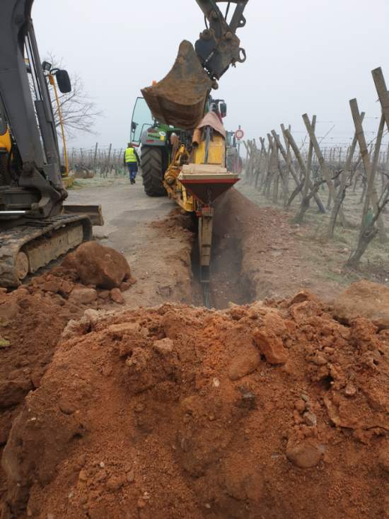 – réalisation des tranchées (avec une trancheuse sur le chantier d’Olwisheim) ;